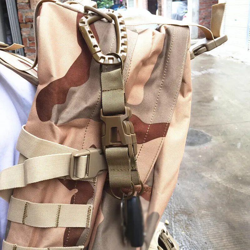Note: The plastic hiking buckle is only used as an equipment attachment hook, which is used to attach items to a harness or backpack. Perfect for carrying items such as gloves, water bottles, keys, headphones, flashlights, or any equipment that does not need to be hooked to a metal buckle. Not for climbing.